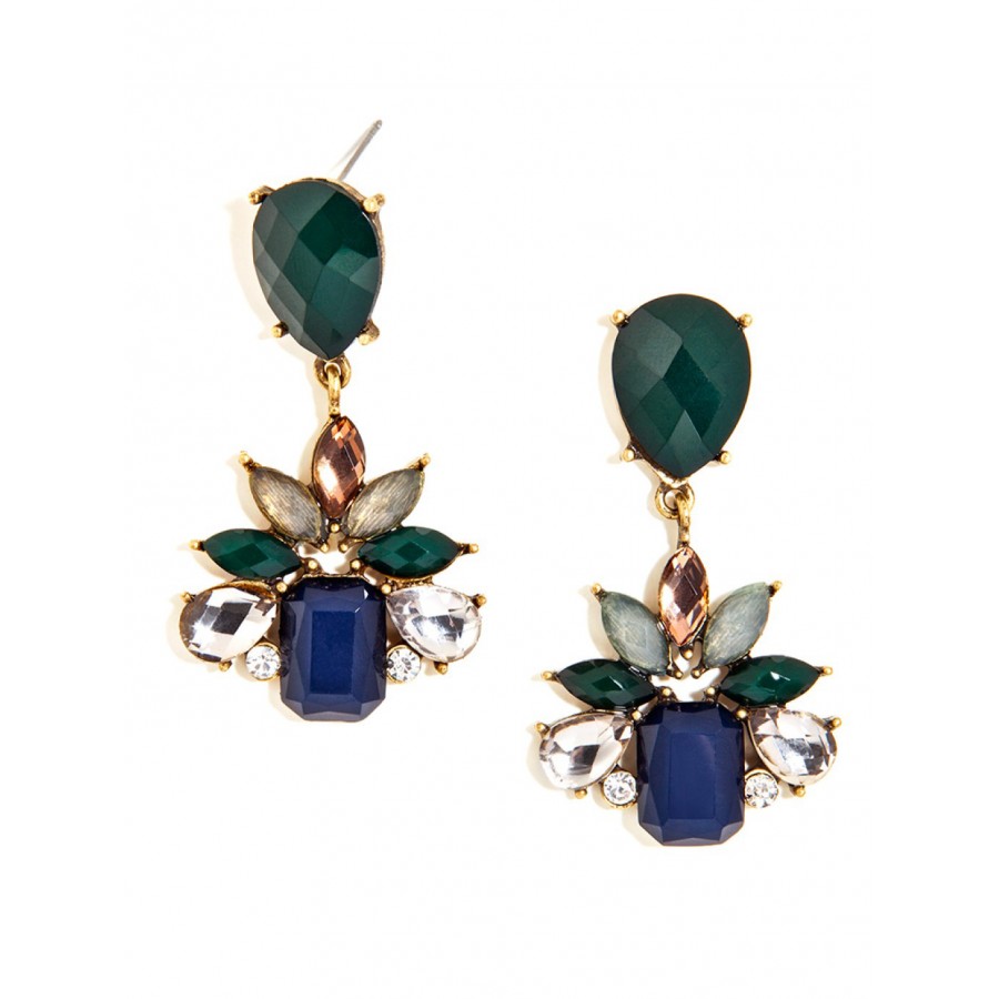 Navy statement earrings comprised of custom resin navettes accented with sparkling crystals.