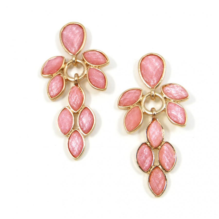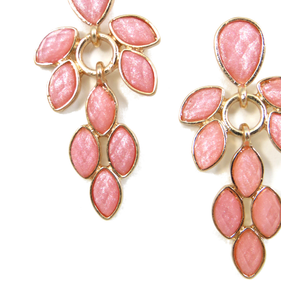 If you're a girl with a sweet side, then you'll love these dazzling chandelier earrings. While the silhouette is grand, the gems are cast in charming pale pastel color of pink.