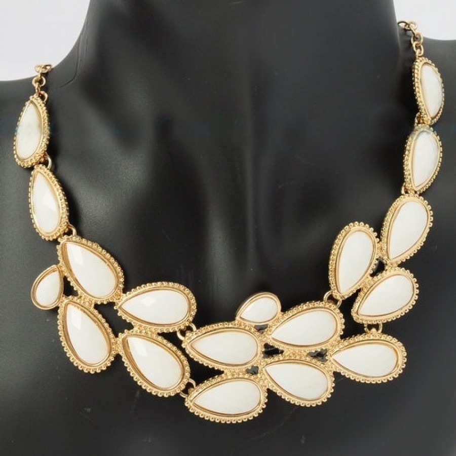 Seafoam Teardrop Crescent Gem Bib Necklace