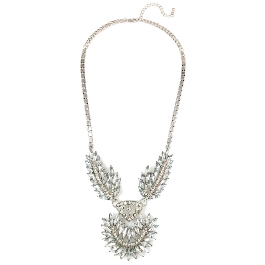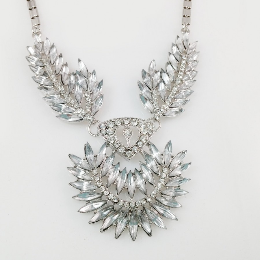 Glam up your outfit with this elegant necklace featuring marquise crystals in a botanical and art deco design on a silver chain. Pictures do not do this necklace justice !