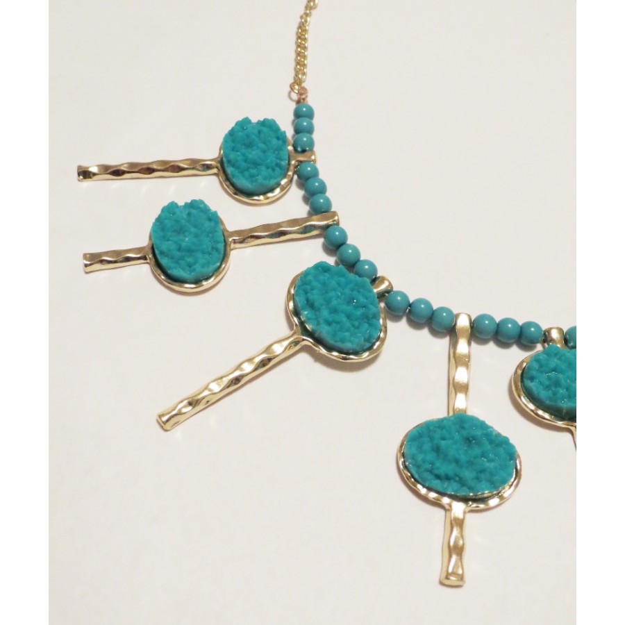A unique design featuring druzy keys on golden chain to glam up any ordinary outfit. Pair with your favorite dress.