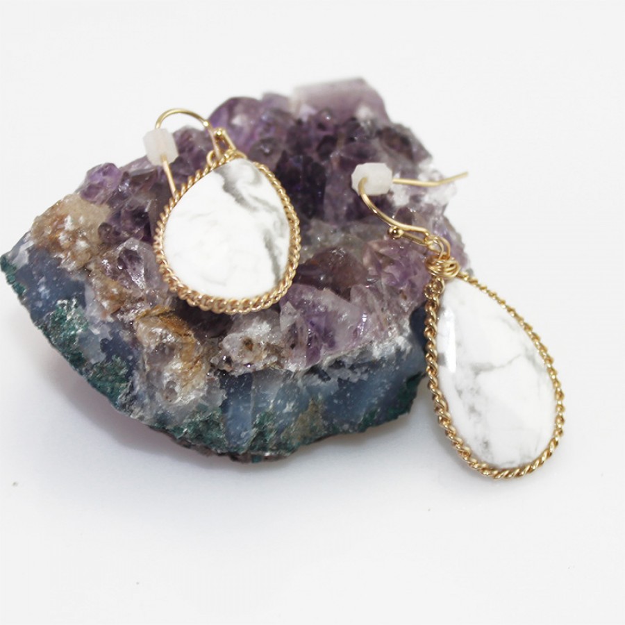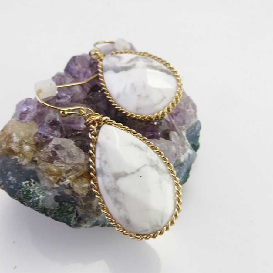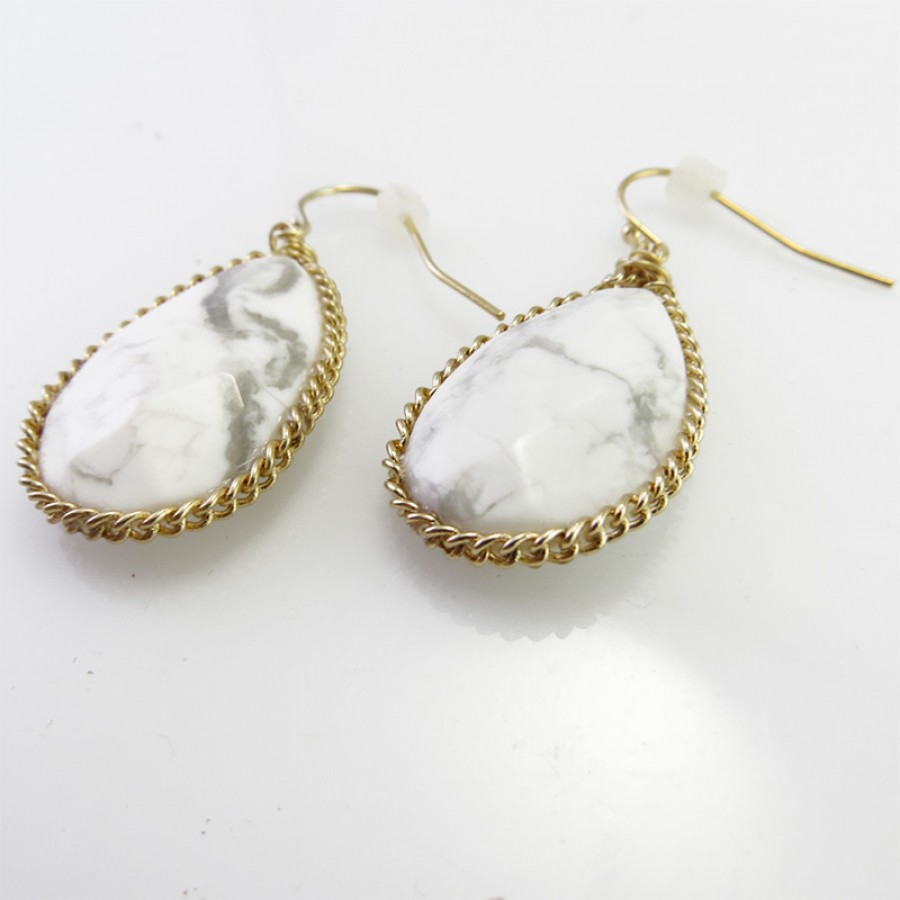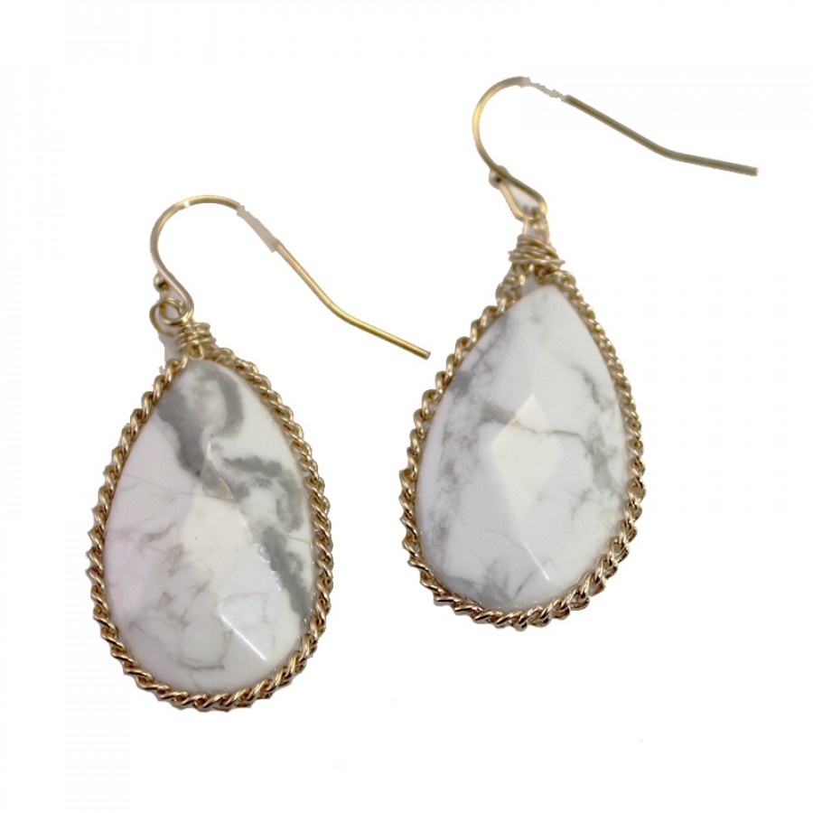 SOLD OUT Theon Howlite White Marble Teardrop Stone Earrings