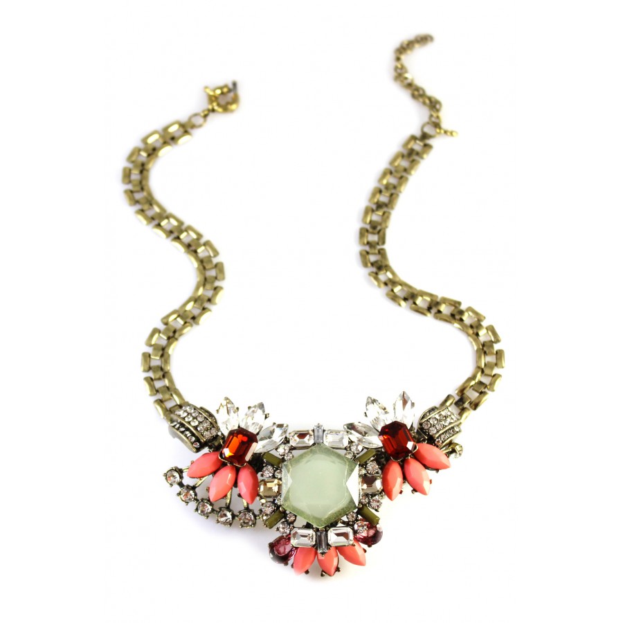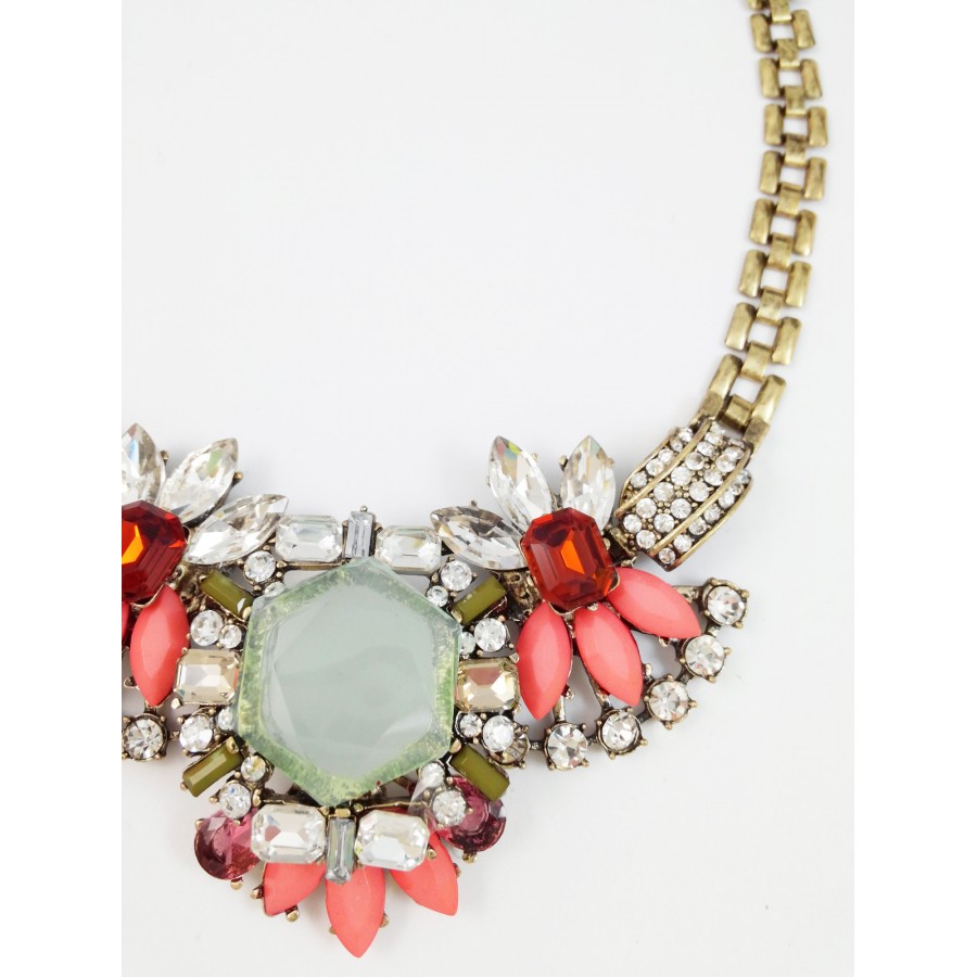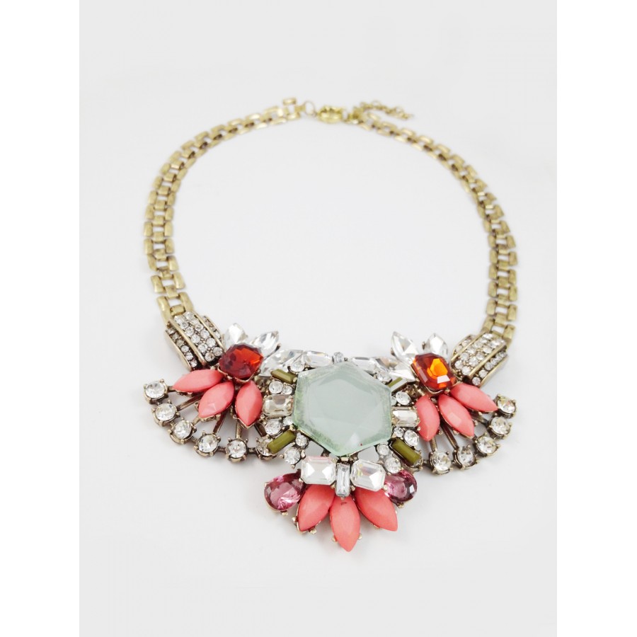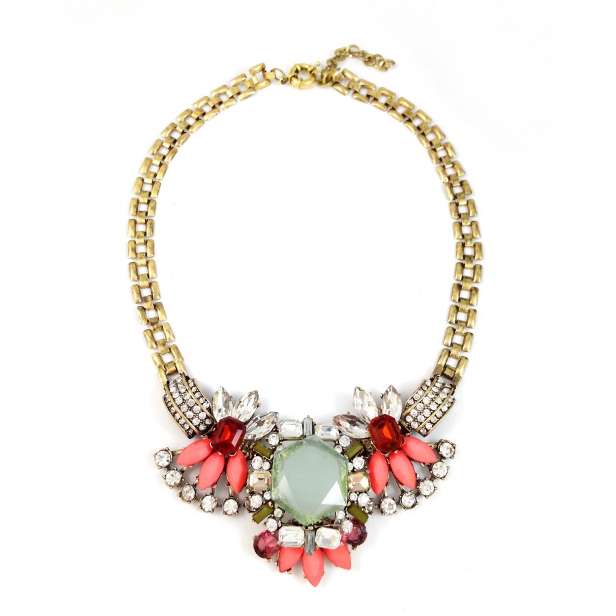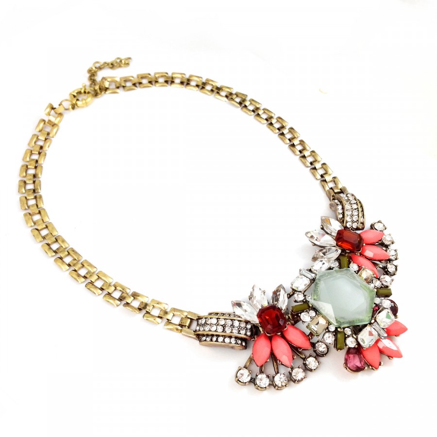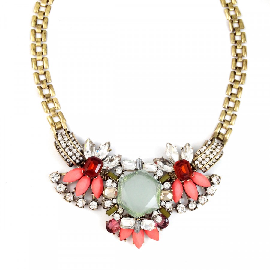 This crystal-covered necklace is opulence redefined. The pavé pieces on either side recall Art Deco-era jewelry, and the overall composition of crystals—compact, symmetrical, front and center—gives it a 1940s glamour feel.