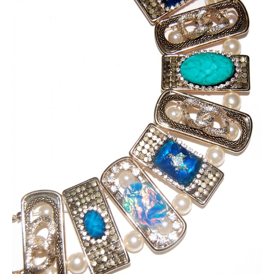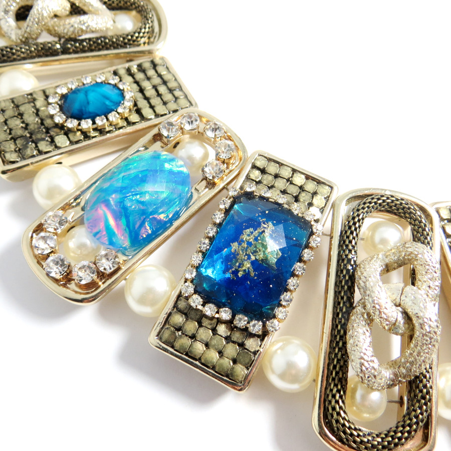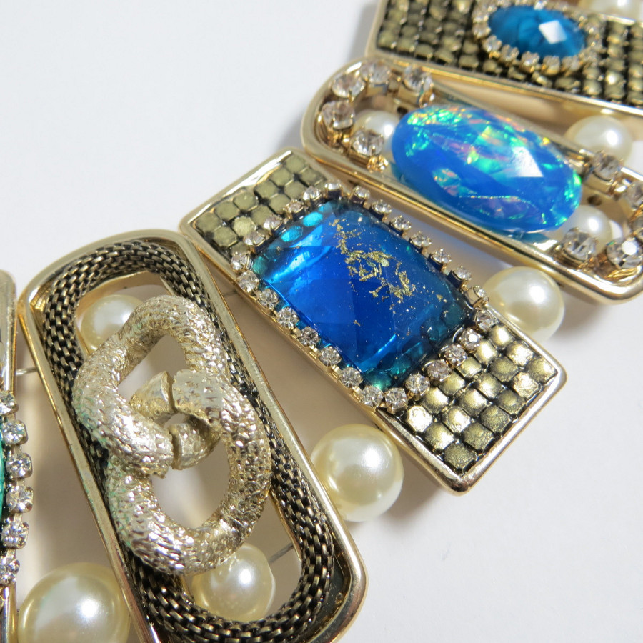 Beautiful statement piece featuring crystal clusters in soft pastel shades accented with vibrant p..