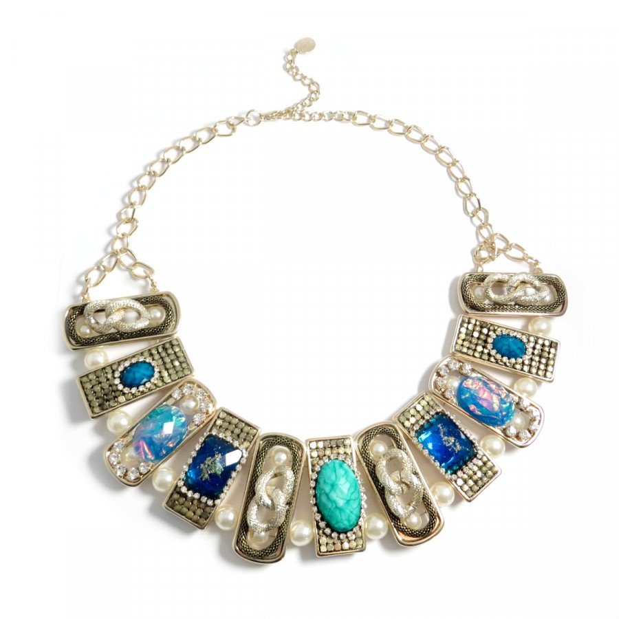 Elegant and chic, this bib necklace features opal iridescent crystals in a beautiful cluster on an a..